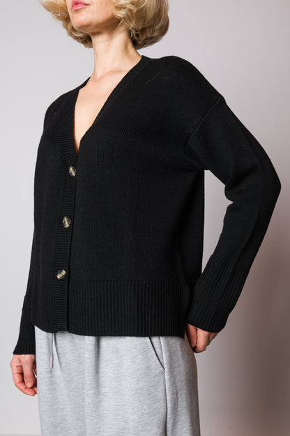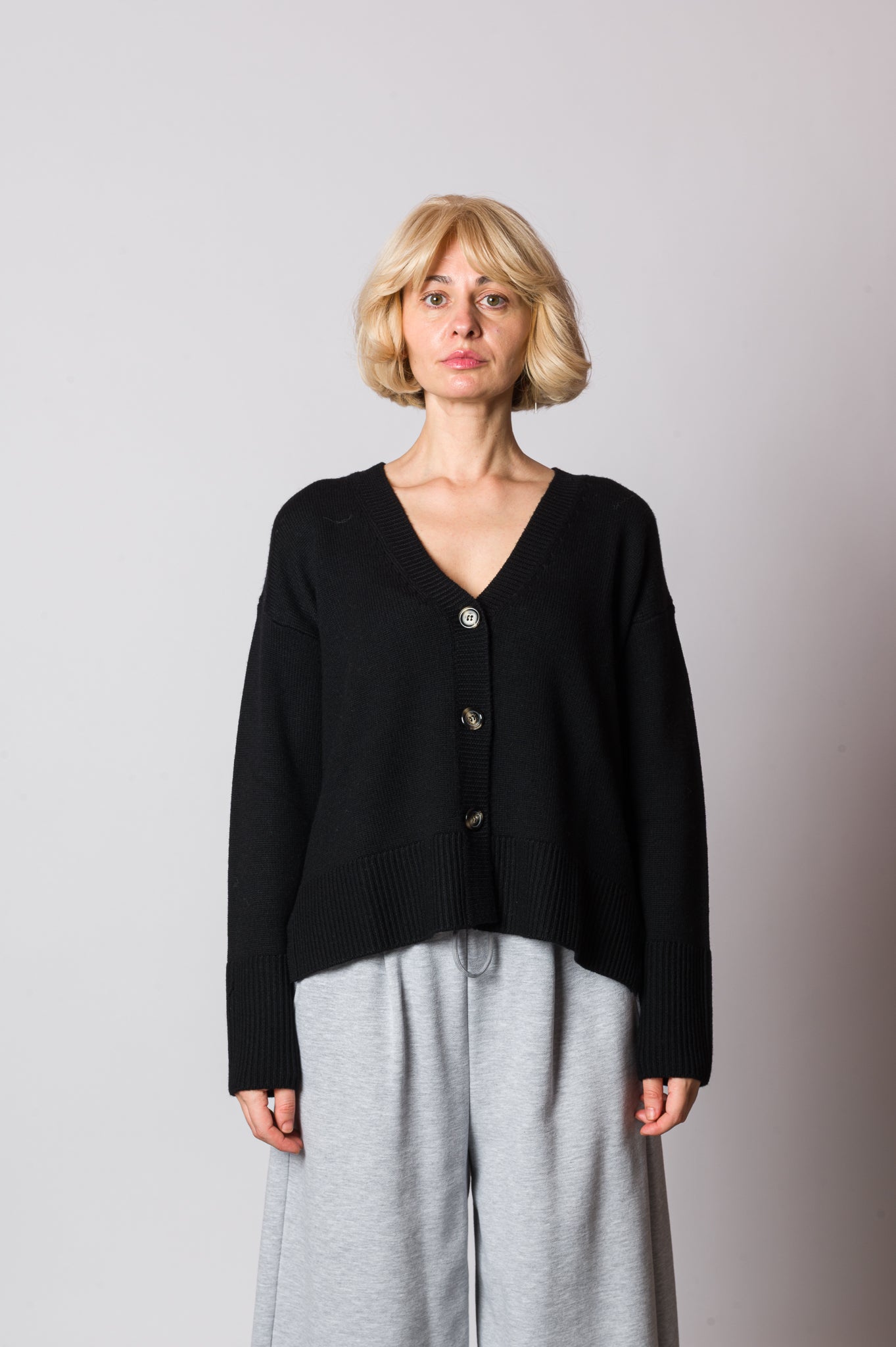Il cardigan in pura lana con spacchi laterali è il capo perfetto per chi cerca comfort, calore ed eleganza. Realizzato in 100% lana, è incredibilmente morbido e piacevole da indossare. La vestibilità morbida lo rende versatile e adatto a diverse fisicità, mentre i due spacchi laterali aggiungono non solo un dettaglio moderno, ma anche la possibilità di indossarlo parzialmente dentro ai pantaloni per creare look dinamici e sofisticati. Un cardigan essenziale e raffinato, ideale da indossare sopra una camicia, con jeans casual o pantaloni sartoriali per un outfit più elegante