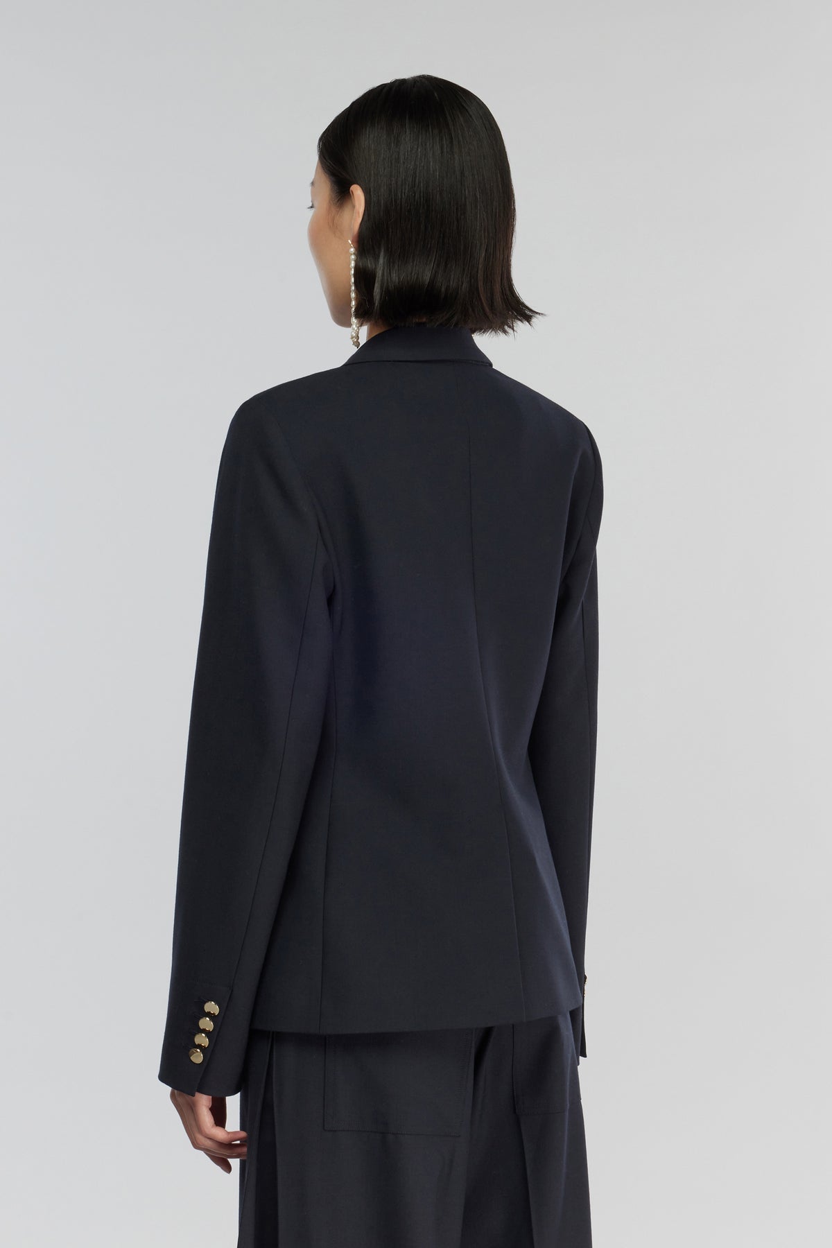 La giacca “Carrie” è un capo che coniuga sofisticatezza sartoriale e linee moderne. Realizzata in fresco di lana, assicura leggerezza e comfort termico, perfetta per le stagioni intermedie. Il modello è doppio petto, con revers a lancia che dona slancio e carattere. La vestibilità regular garantisce una linea armoniosa, né troppo stretta né eccessivamente ampia. Il modello è doppio petto, con revers a lancia che dona slancio e carattere. La vestibilità regular garantisce una linea armoniosa, né troppo stretta né eccessivamente ampia. Questa giacca è pensata per accompagnare outfit professionali, ma sa anche essere il pezzo distintivo di un look casual raffinato.