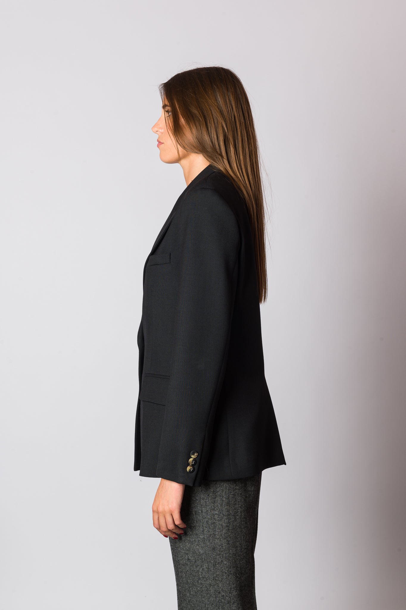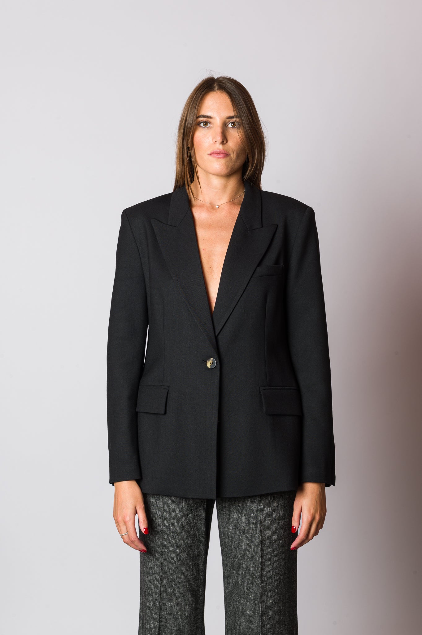 La giacca in lana monopetto è un capo essenziale del guardaroba femminile, pensato per chi ama l’eleganza senza tempo con un tocco moderno. Il modello presenta un taglio regular fit, che assicura comfort e armonia alla silhouette, con linee leggermente slim per valorizzare le forme. Il rever a lancia regala un’allure sartoriale, mentre il bottone effetto corno diventa un dettaglio ricercato e distintivo. Le tasche a pattina completano il design, rendendo questa giacca perfetta da indossare sia in ufficio con pantaloni sartoriali, sia nel tempo libero con denim e maglieria. Un capo versatile, elegante e intramontabile, ideale per accompagnare ogni stagione con stile
