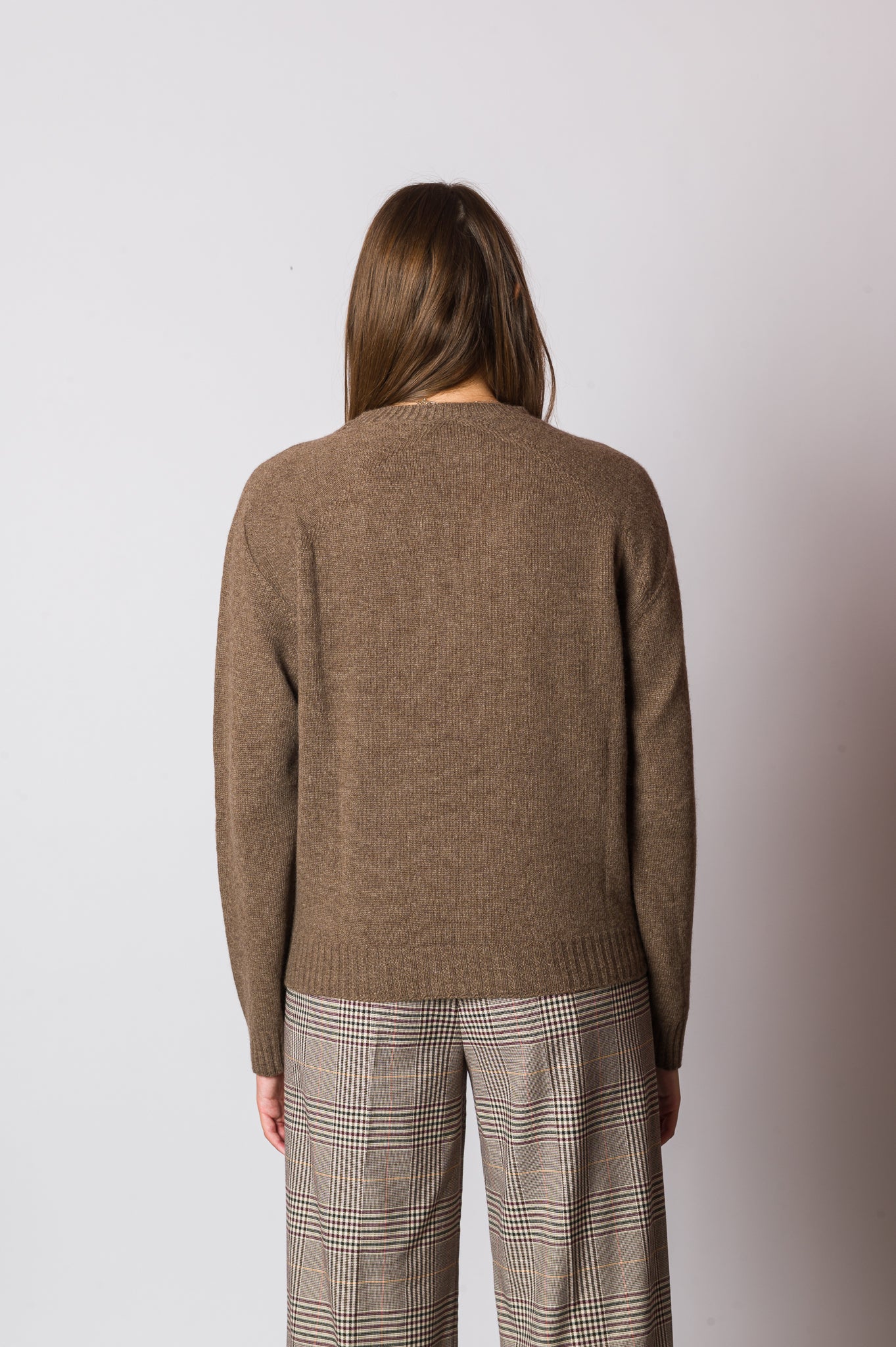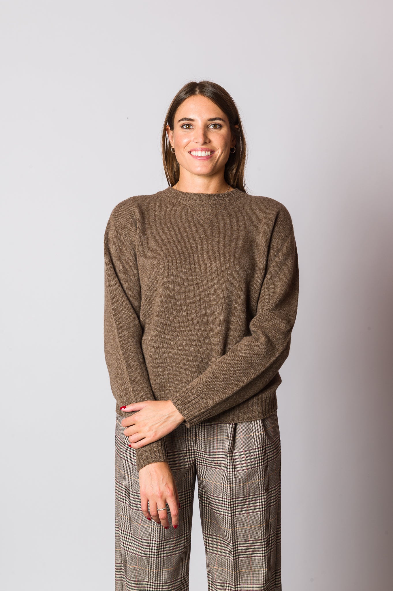 Una maglia essenziale e raffinata, perfetta per accompagnarti in ogni occasione: la maglia girocollo in lana e cashmere color nocciola. Il filato pregiato in lana e cashmere la rende calda ma leggera, morbida al tatto e piacevole da indossare. La vestibilità morbida offre comfort assoluto, mentre il dettaglio delle cuciture effetto felpa sul collo dona un tocco contemporaneo e ricercato. Il color nocciola, neutro ed elegante, la rende versatile e facile da abbinare: ideale sotto una giacca sartoriale, con un denim casual o con pantaloni più raffinati. Un capo che unisce comfort, qualità e stile senza tempo.