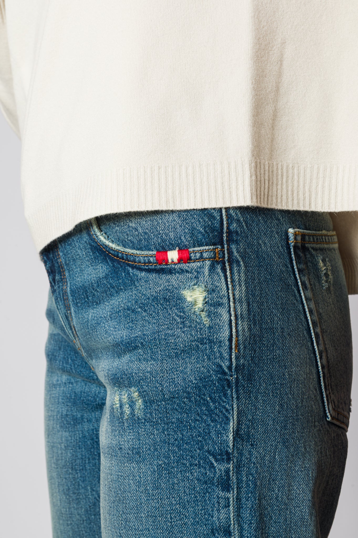 I jeans Woodstock Dust sono l’emblema di uno stile casual ma ricercato. Realizzati in denim 100% cotone con lavaggio chiaro, presentano una linea a zampa (flare fit) che slancia la figura e dona un tocco rétro sempre attuale. La vita media con passanti e chiusura con zip e bottone assicura comfort e praticità, mentre le tasche posteriori arricchite da ricamo in contrasto aggiungono un dettaglio distintivo. Perfetti da indossare tutti i giorni, si abbinano facilmente sia a t-shirt e sneakers per un look rilassato, sia a camicie e blazer per uno stile più sofisticato.